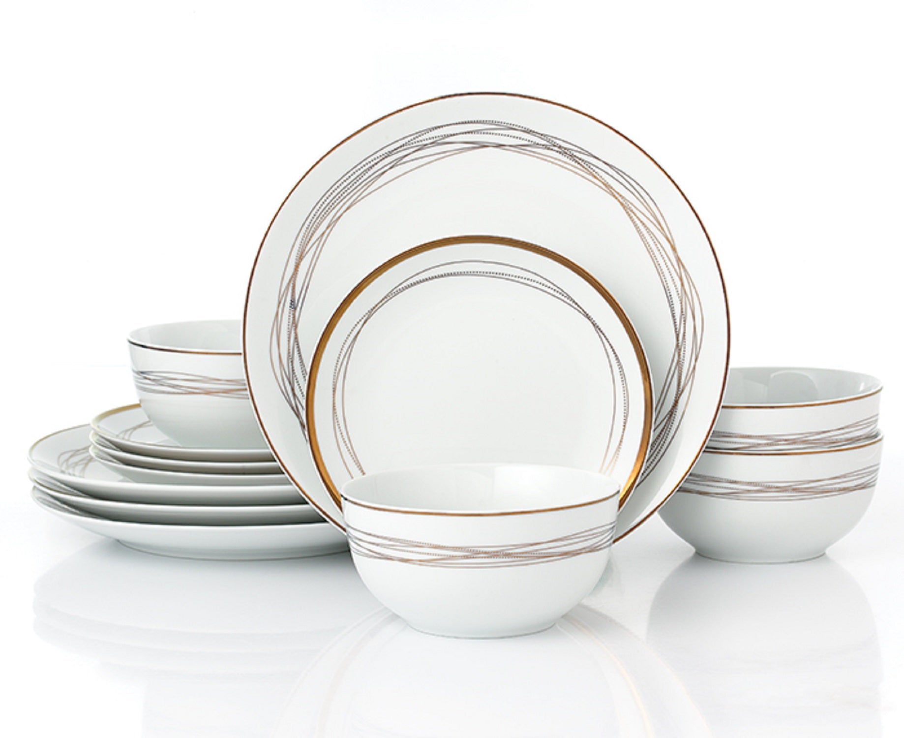 Gold Swirl Xmas Porcelain Dinnerware Set, 12 Pieces
