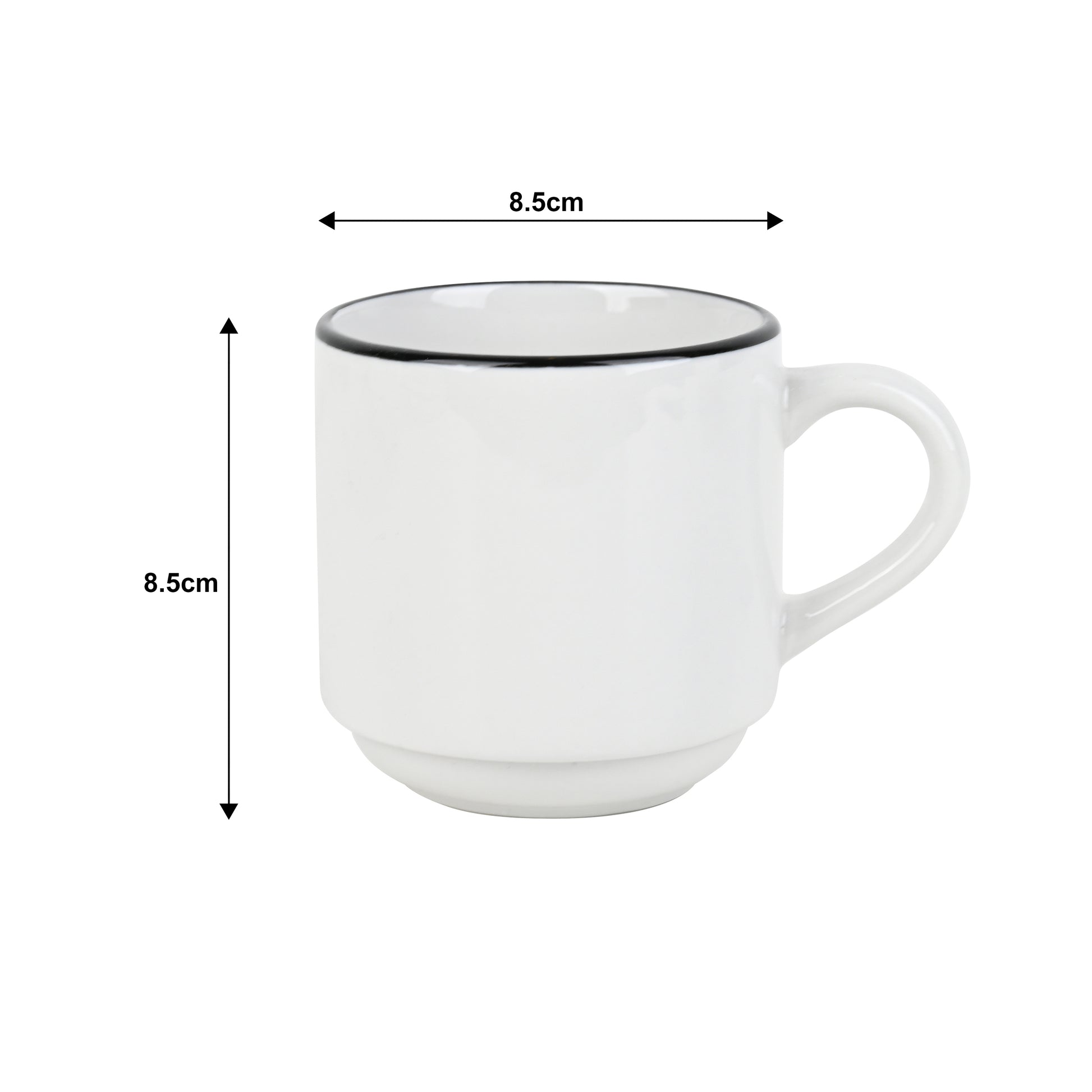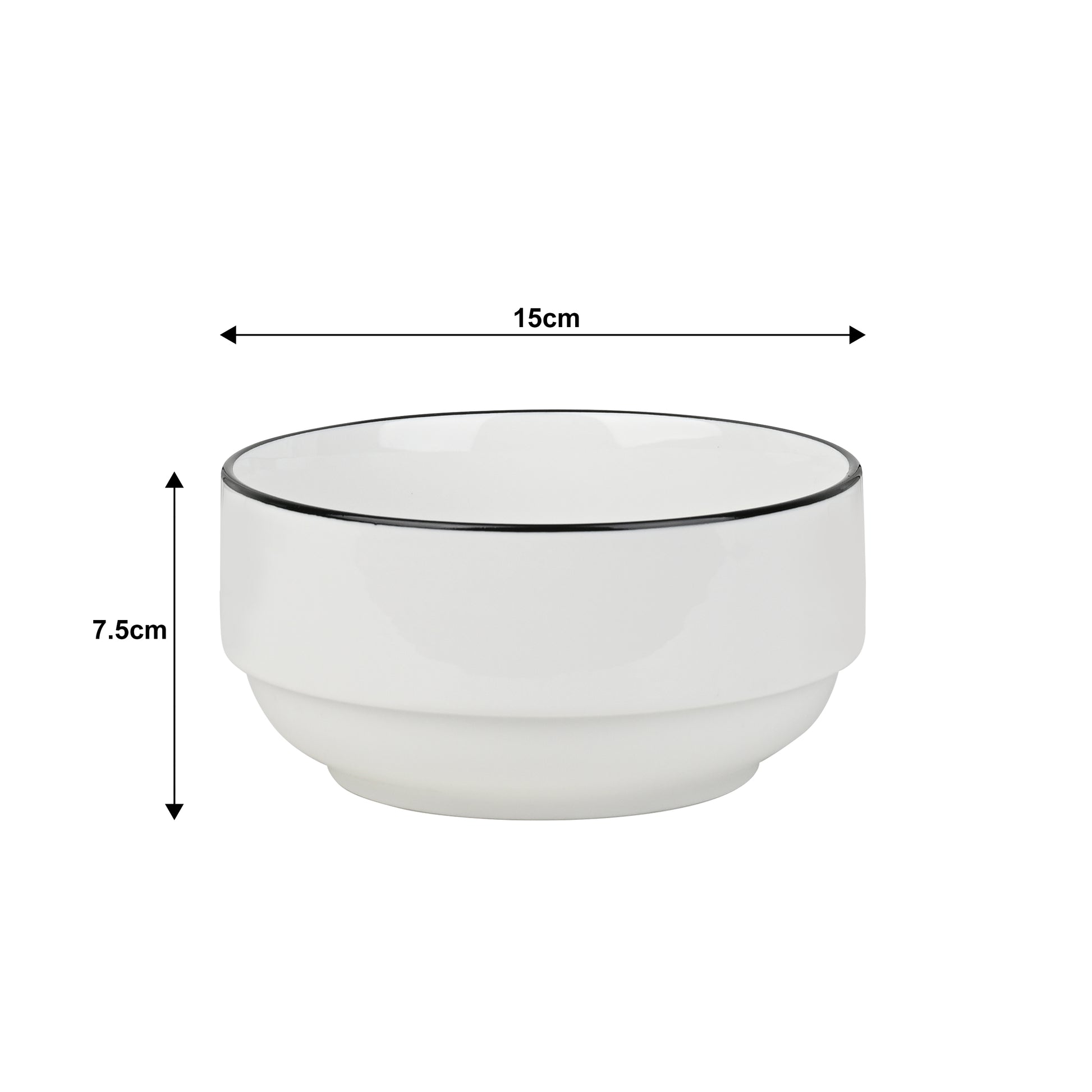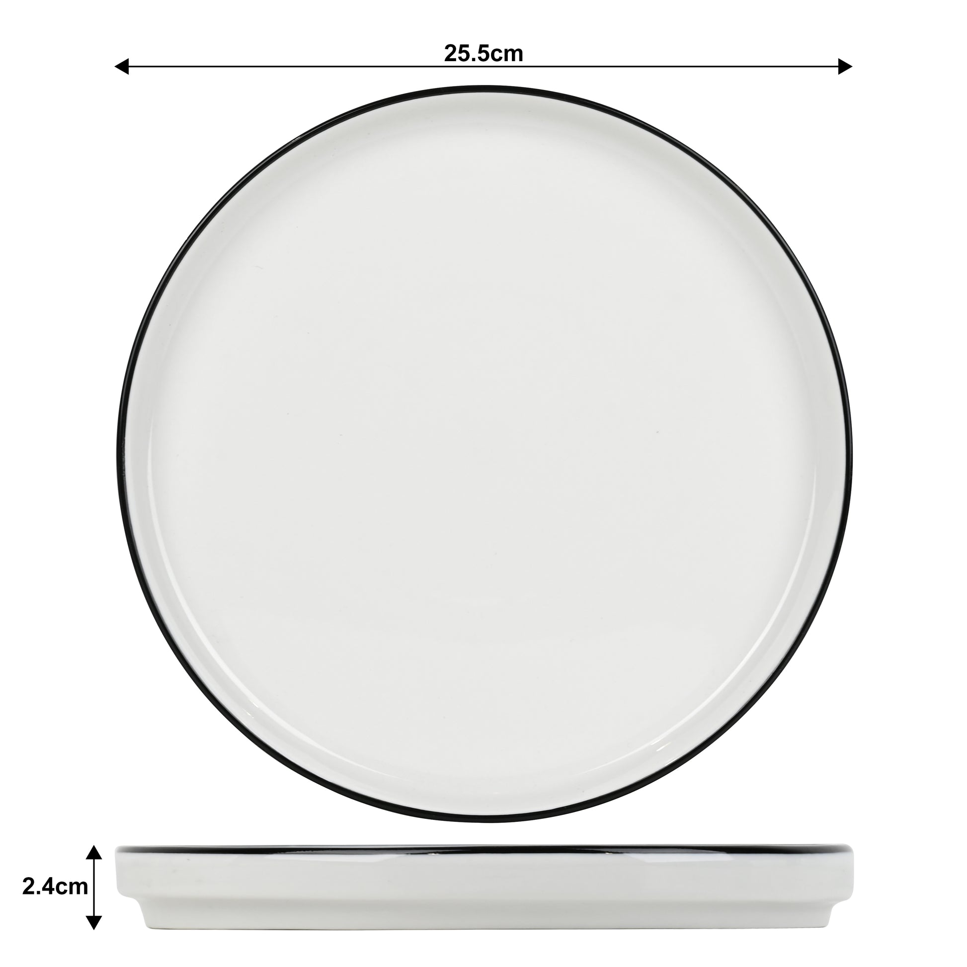 Stackable White with Black Rim Porcelain Dinner Set, 16 Pieces